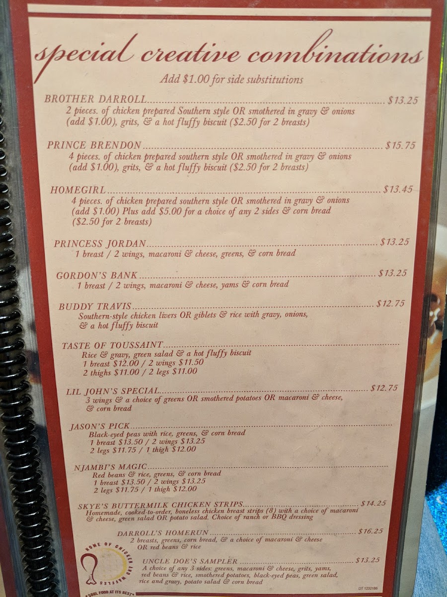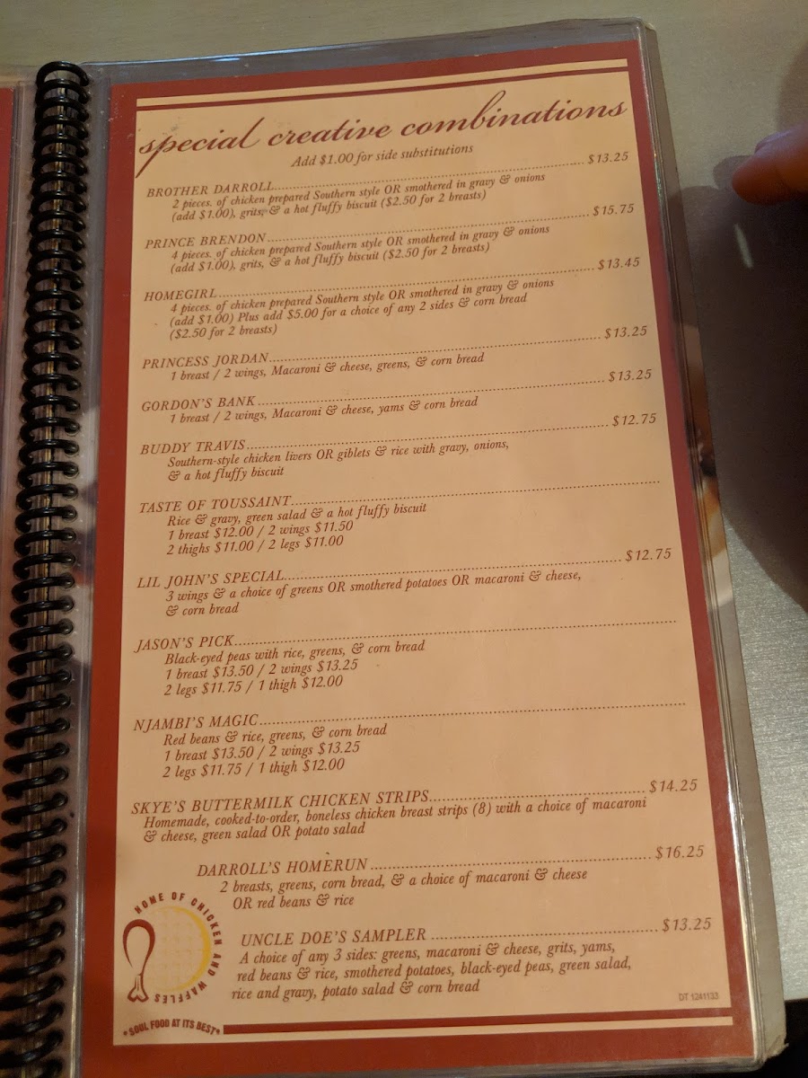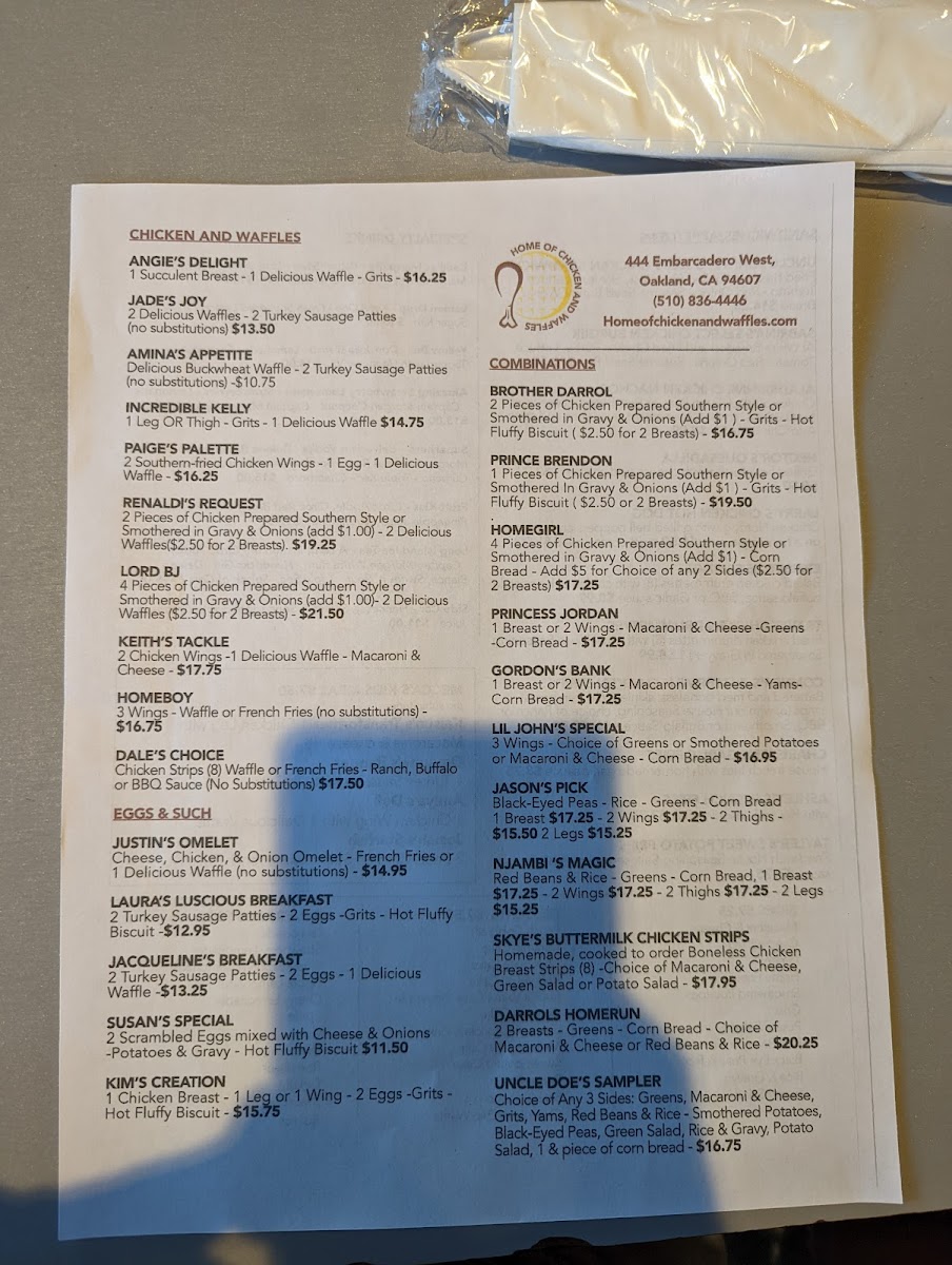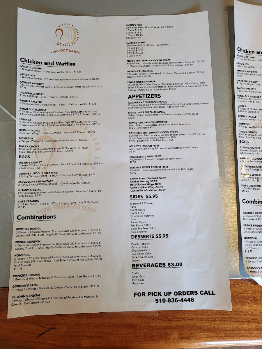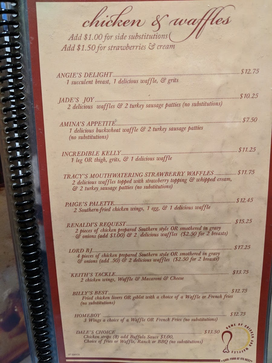 Home of Chicken & Waffles Menu